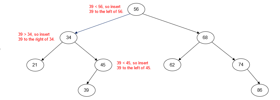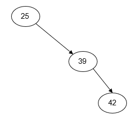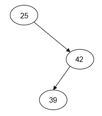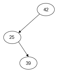 | Insert: 39, 25, 42 | Insert: 39, 42, 25 | Insert: 25, 39, 42 |